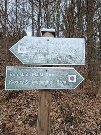 Wegweiser und Wegmarken an einer Kreuzung